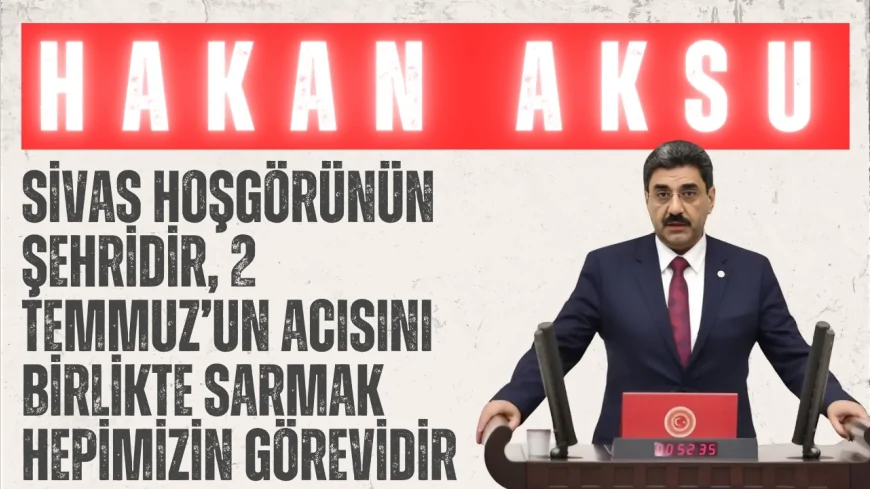 AK Parti Sivas Milletvekili Hakan Aksu, 2 Temmuz 2025 tarihinde TBMM Genel Kurulu’nda yaptığı konuşmada, 1993 yılında yaşanan Sivas Madımak Katliamı’nın yıldönümünde birlik ve toplumsal dayanışma mesajları verdi. Aksu, ayrıca son günlerde gündem olan Leman dergisindeki karikatüre de tepki gösterdi.