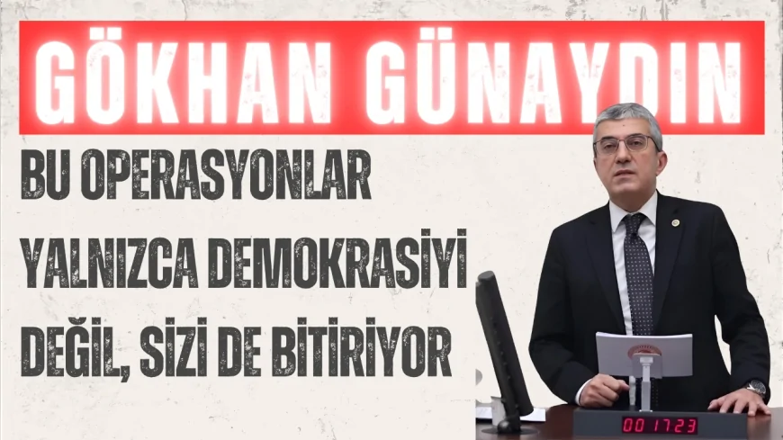 CHP Grup Başkanvekili ve İstanbul Milletvekili Doç. Dr. Gökhan Günaydın, TBMM Genel Kurulu’nda yaptığı konuşmada, başta Zeydan Karalar, Muhittin Böcek ve Mehmet Murat Çalık olmak üzere CHP’li belediye başkanlarına yönelik tutuklama ve yargı süreçlerine ilişkin değerlendirmelerde bulundu.