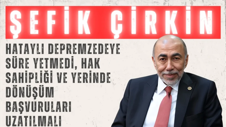 Çevre ve Şehircilik Bakanlığı’na çağrıda bulunan Şefik Çirkin, hem hak sahipliği hem yerinde dönüşüm için başvuru sürelerinin uzatılmasını talep etti. “Hataylıların durumu farklı, bu sürece empatiyle yaklaşılmalı” ifadelerini kullandı.