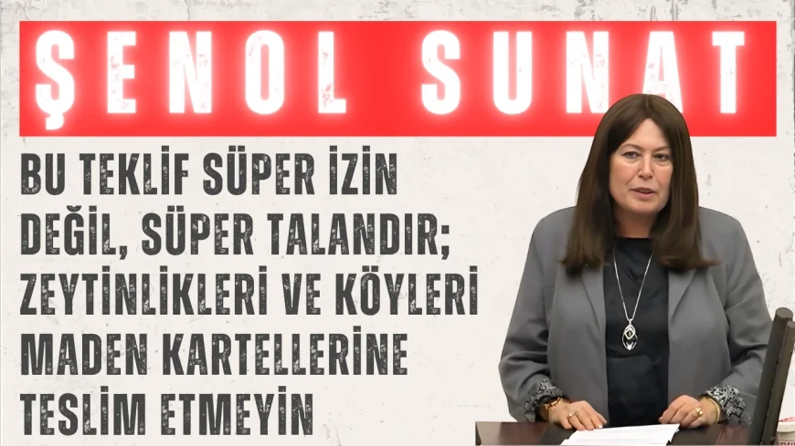 Konuşmasında “süper izin” olarak sunulan düzenlemeyi “süper talan” olarak niteleyen Sunat, “Bu teklif yasalaşırsa en az 40 köy haritadan silinecek, binlerce insan yerinden edilecek. Zeytinlikler maden sahalarına, ormanlar enerji holdinglerine terk edilecek” dedi.