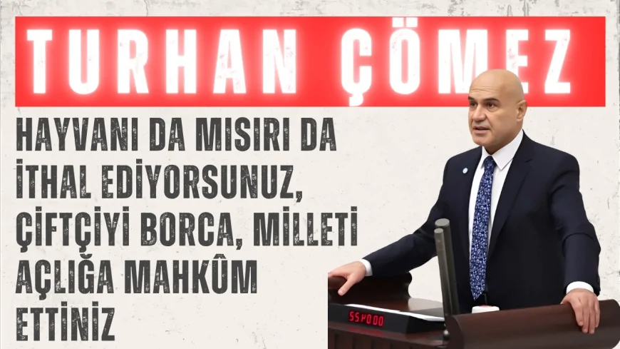 İYİ Parti Grup Başkanvekili ve Balıkesir Milletvekili Dr. Turhan Çömez, TBMM Genel Kurulu’nda yaptığı konuşmada Türkiye’de tarımın içinde bulunduğu durumu “felaket” olarak nitelendirdi. AK Parti iktidarını ve Cumhurbaşkanı Recep Tayyip Erdoğan’ın tarıma yönelik açıklamalarını hedef alan Çömez, verilerle tarımsal çöküşü ortaya koydu.