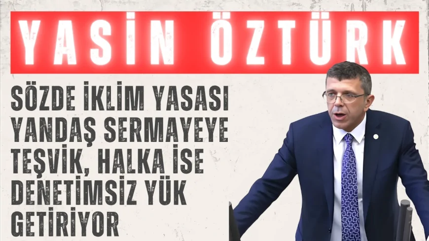 TBMM Genel Kurulu’nda görüşülmekte olan İklim Kanunu Teklifi’ne ilişkin söz alan İYİ Parti Denizli Milletvekili Yasin Öztürk, iktidarın sunduğu teklifi “yeşil görünen ancak rant odaklı bir yasa” olarak nitelendirdi. Öztürk, teklifin adı çevreyle ilgili olsa da içeriğinin büyük holdingler ve enerji şirketleri lehine düzenlendiğini söyledi.