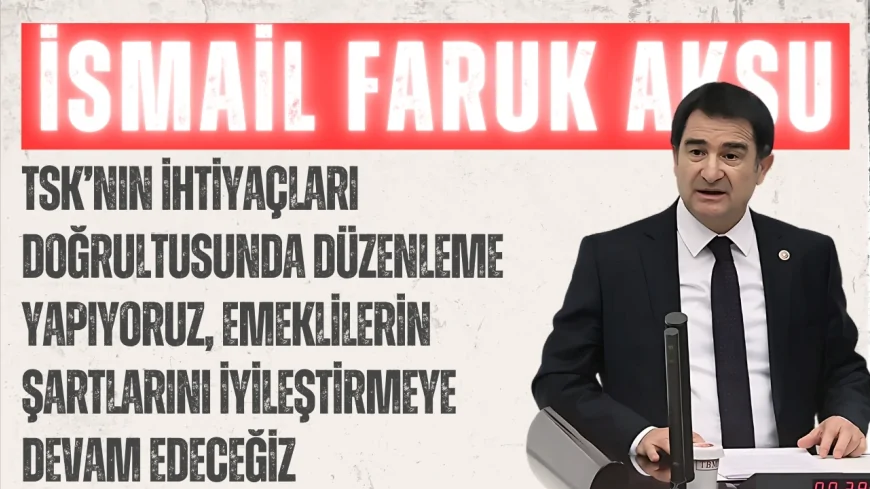 MHP Grubu adına TBMM Genel Kurulu’nda konuşan Genel Başkan Yardımcısı ve İstanbul Milletvekili İsmail Faruk Aksu, 217 sıra sayılı torba kanun teklifinin birinci bölümü üzerine değerlendirmelerde bulundu. Aksu, düzenlemelerin hem TSK’nın yapısal ihtiyaçlarına yanıt verdiğini hem de çalışma hayatını ve emeklilik sistemini güçlendirmeyi hedeflediğini söyledi.